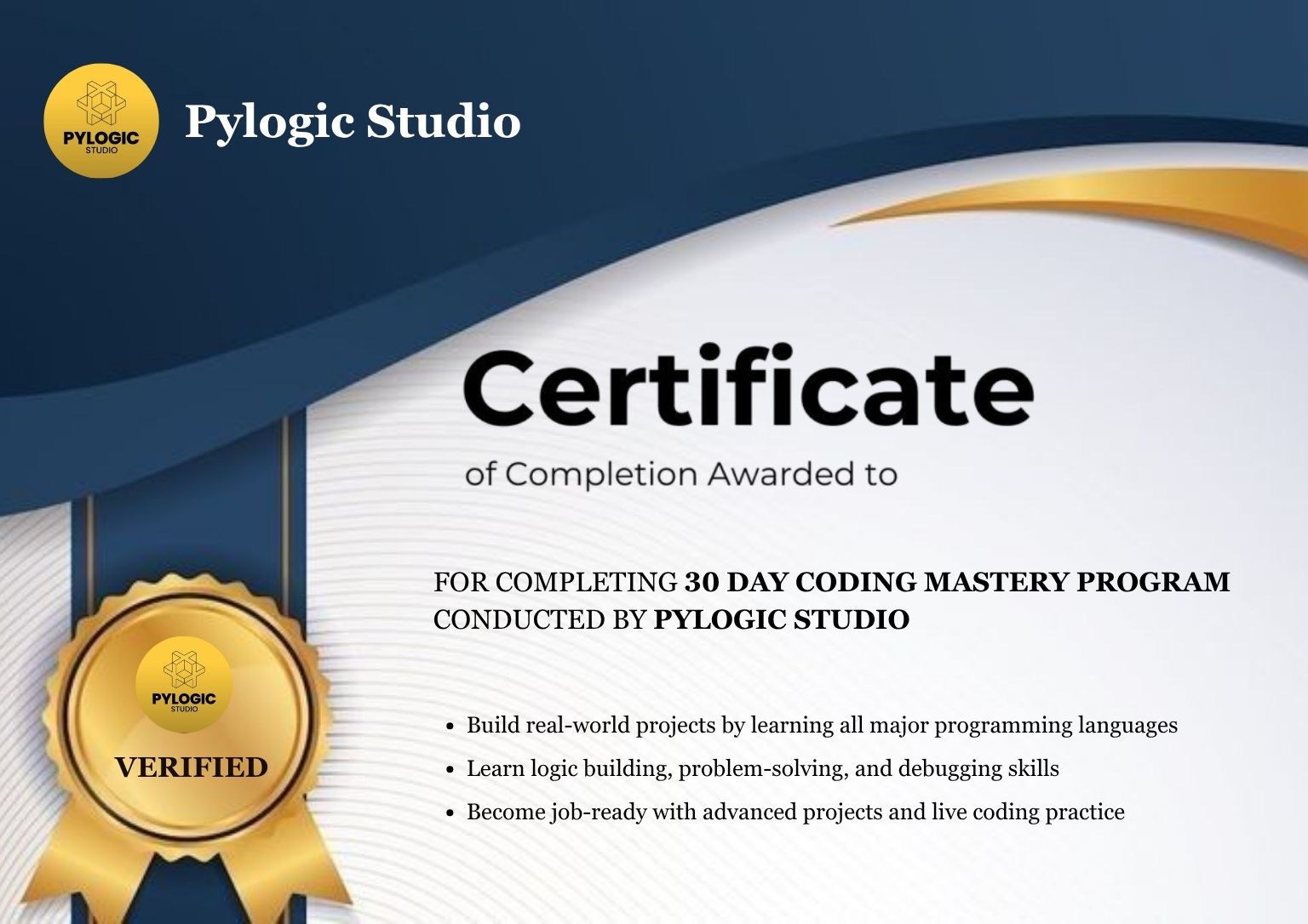 Master Python Development through our focused 30-day guided program. Learn from expert mentors, work on real-world projects, and gain the confidence to code from scratch — even if you’re a complete beginner!